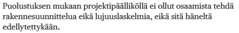 Tapauksessa kiistellään siitä, kenen vastuulla sillan kestävyys ja turvallisuus olivat. Puolustuksen mukaan projektipäälliköltä ei edellytetty rakennesuunnittelua tai lujuuslaskentaa, eikä hänellä ollut siihen osaamista. Samalla on esitetty, että nopeutta ja edullisuutta on priorisoitu turvallisuuden edelle. Lue HS artikkeli aiheesta.